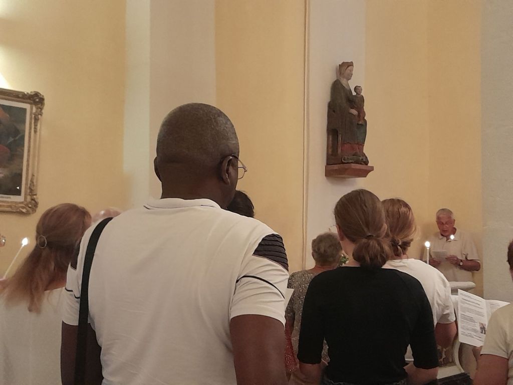 Nous sommes donc restés méditer le chapelet à l’église de Beaumont devant la statue de Notre-Dame de Plantenay.